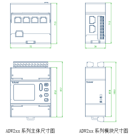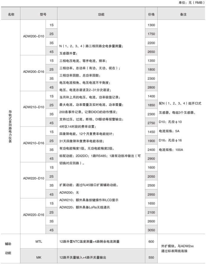 ADW2xx系列導(dǎo)軌式多回路電力儀表方便用戶進(jìn)行用電監(jiān)測、集抄和管理??伸`活安裝于配電箱內(nèi),實現(xiàn)對不同區(qū)域和不同負(fù)荷的分項電能計量,統(tǒng)計和分析。訂貨范例: