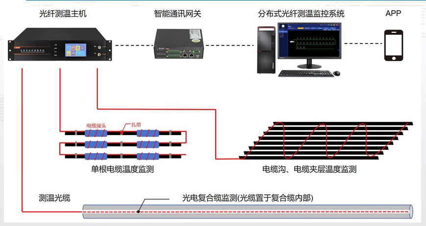 分布式光纖測溫系統(tǒng)集計(jì)算機(jī)、光纖通訊、光纖傳感、光電控制等技術(shù)于一 體,有良好的性能指標(biāo)和系統(tǒng)穩(wěn)定性,連續(xù)監(jiān)測長距離大范圍環(huán)境溫度信息,能及早發(fā)現(xiàn)事故隱患,將損失減低,為通信、電力、石油、交通、煤礦等領(lǐng)域的輸配電電纜、配電母線槽、油氣管道及儲(chǔ)罐監(jiān)測等提供優(yōu) 質(zhì)的溫度監(jiān)測解決方案。