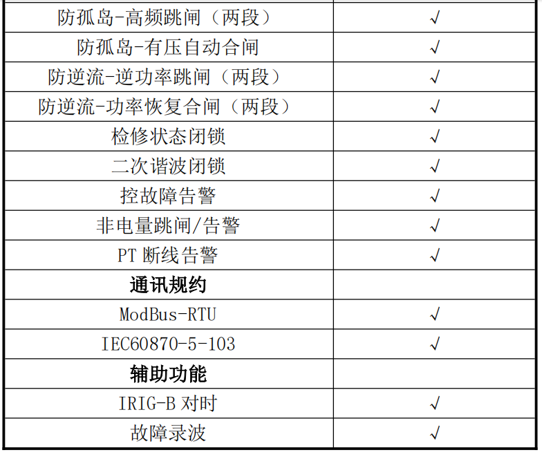 防逆流保護(hù)裝置具有多種保護(hù)功能,如逆功率保護(hù)、過電壓跳閘、低電壓跳閘、有壓自動(dòng)合閘、過頻率跳閘、低頻率跳閘、瞬時(shí)逆功率判別跳閘等。這些功能可以有效地保護(hù)光伏發(fā)電系統(tǒng)的穩(wěn)定性和可靠性。