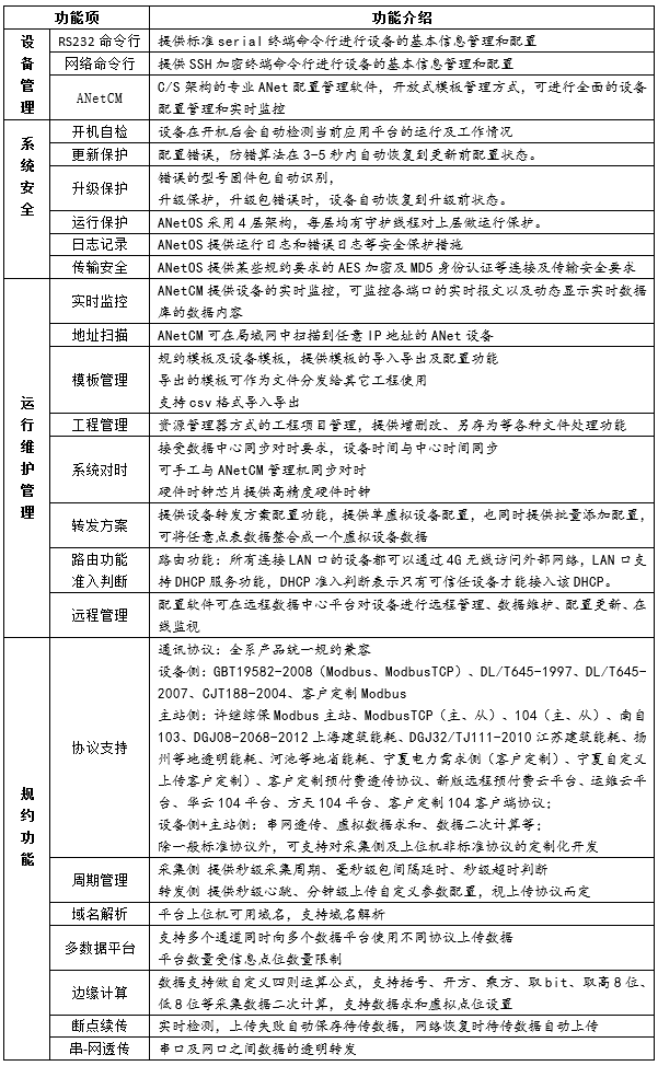 ANet智能通信管理機(jī)作為自動(dòng)化系統(tǒng)網(wǎng)絡(luò)與監(jiān)測(cè)設(shè)備之間的通信接口設(shè)備,提供規(guī)約轉(zhuǎn)換、透明轉(zhuǎn)發(fā)、數(shù)據(jù)加密壓縮、數(shù)據(jù)轉(zhuǎn)換、邊緣計(jì)算等多項(xiàng)功能。