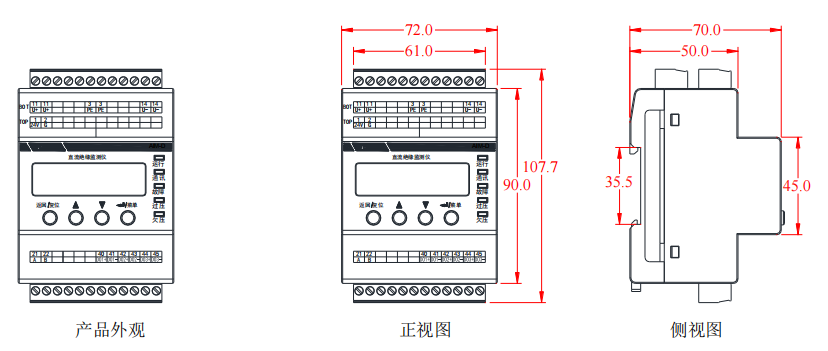 ■ 電壓監(jiān)測功能。產(chǎn)品可以監(jiān)測直流系統(tǒng)正負(fù)極之間的電壓,正負(fù)極對(duì)地電壓。