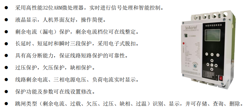 智能塑殼斷路器具有間接接觸保護(hù)功能,防止因設(shè)備絕緣損壞,產(chǎn)生接地故障電流而引起的火災(zāi)危險(xiǎn);并可用來(lái)分配電能,保護(hù)線路,