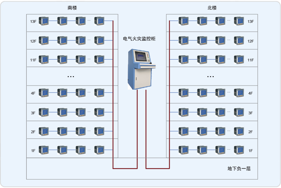 站控管理層針對電氣火災(zāi)監(jiān)控系統(tǒng)的管理人員,是人機交互的直接窗口,也是系統(tǒng)的上層部分。主要由系統(tǒng)軟件和必要的硬件設(shè)備,如監(jiān)控主機、顯示器、UPS電源等組成。監(jiān)測系統(tǒng)軟件具有良好的人機交互界面,對現(xiàn)場各類數(shù)據(jù)信息計算、分析、處理,并以圖形、數(shù)顯、聲音、指示燈等方式反應(yīng)現(xiàn)場運情況。