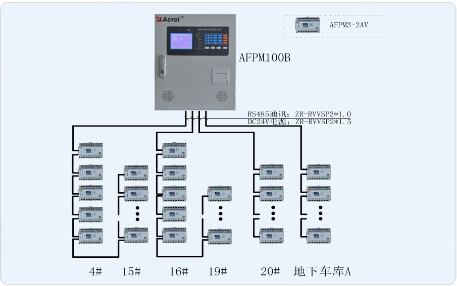 本項目設(shè)計范圍為吉祥e家小區(qū)4#、15#、16#、19#、20#及地下車庫A消防電源回路。安科瑞電氣股份有限公司為吉祥e家小區(qū)設(shè)計一套消防設(shè)備電源監(jiān)控系統(tǒng),系統(tǒng)通過對吉祥e家消防設(shè)備的供電電源的故障和異常狀態(tài)進行監(jiān)控,及時報警提醒相關(guān)人員消除這些隱患,防止發(fā)生火災時,消防設(shè)備無電可用,設(shè)備不能正常投入使用,保障消防聯(lián)動系統(tǒng)的可靠性。