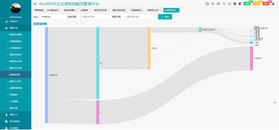 為水務(wù)搭建計(jì)量體系,顯示水務(wù)的能源流向和能源損耗,通過能源流向圖幫助水務(wù)分析能源消耗去向,找出能源消耗異常區(qū)域。