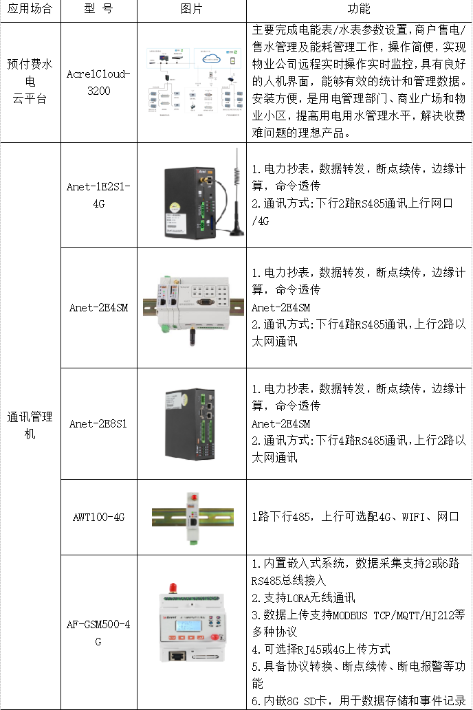 五、安科瑞預(yù)付費(fèi)管理系統(tǒng)及現(xiàn)場(chǎng)硬件選型
