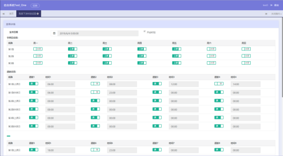 可根據(jù)學(xué)校實(shí)際要求,進(jìn)行生效日期設(shè)置、節(jié)假日設(shè)置、通斷設(shè)置和備注,并對(duì)已經(jīng)設(shè)置的進(jìn)行篩選查看。