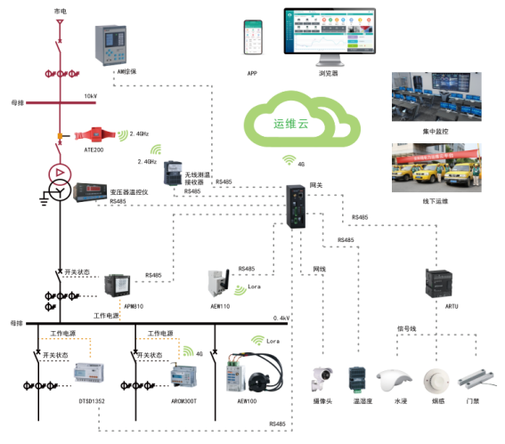AcrelCloud-1000變電所運(yùn)維云平臺(tái)基于互聯(lián)網(wǎng)+、大數(shù)據(jù)、移動(dòng)通訊等技術(shù)開(kāi)發(fā)的云端管理平臺(tái),滿足用戶或運(yùn)維公司監(jiān)測(cè)眾多變電所回路運(yùn)行狀態(tài)和參數(shù)、室內(nèi)環(huán)境溫濕度、電纜及母線運(yùn)行溫度、現(xiàn)場(chǎng)設(shè)備或環(huán)境視頻場(chǎng)景等需求,實(shí)現(xiàn)數(shù)據(jù)一個(gè)中心,集中存儲(chǔ)、統(tǒng)一管理,方便使用,支持具有權(quán)限的用戶通過(guò)電腦、手機(jī)、PAD等各類終端鏈接訪問(wèn)、接收?qǐng)?bào)警,并完成有關(guān)設(shè)備日常和定期巡檢和派單等管理工作。