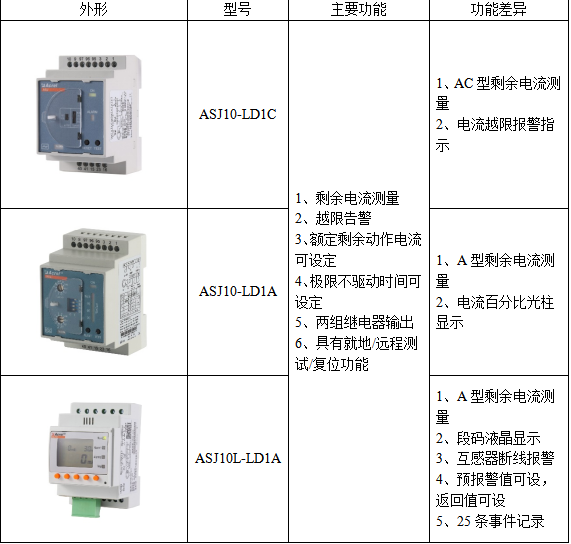 ASJ系列產(chǎn)品主要有兩種安裝方式,ASJ10系列為導(dǎo)軌安裝,外形和功能如下表所示: