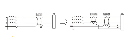 對(duì)于TN-C系統(tǒng),不能采用剩余電流繼電器。因?yàn)?PE 線和 N 線合一,若 PEN 線不重復(fù)接地,當(dāng)外殼帶電,互感器進(jìn)出電流相等,ASJ拒動(dòng);若PEN線重復(fù)接地,部分單相電流將流入重復(fù)接地,達(dá)一定值后,ASJ 誤動(dòng)。 需將TN-C系統(tǒng)改造成TN-C-S系統(tǒng),同TN-S系統(tǒng),再將剩余電流互感器接入TN-S系統(tǒng)中。