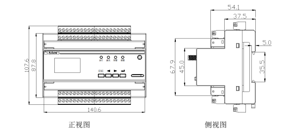 (2)剩余電流監(jiān)測儀外形與安裝尺寸如下圖所示。(單位:mm)