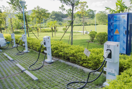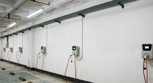 電動車充電樁采用集中安裝的方式,一般安裝于戶外車庫或者地下車庫,如下圖所示