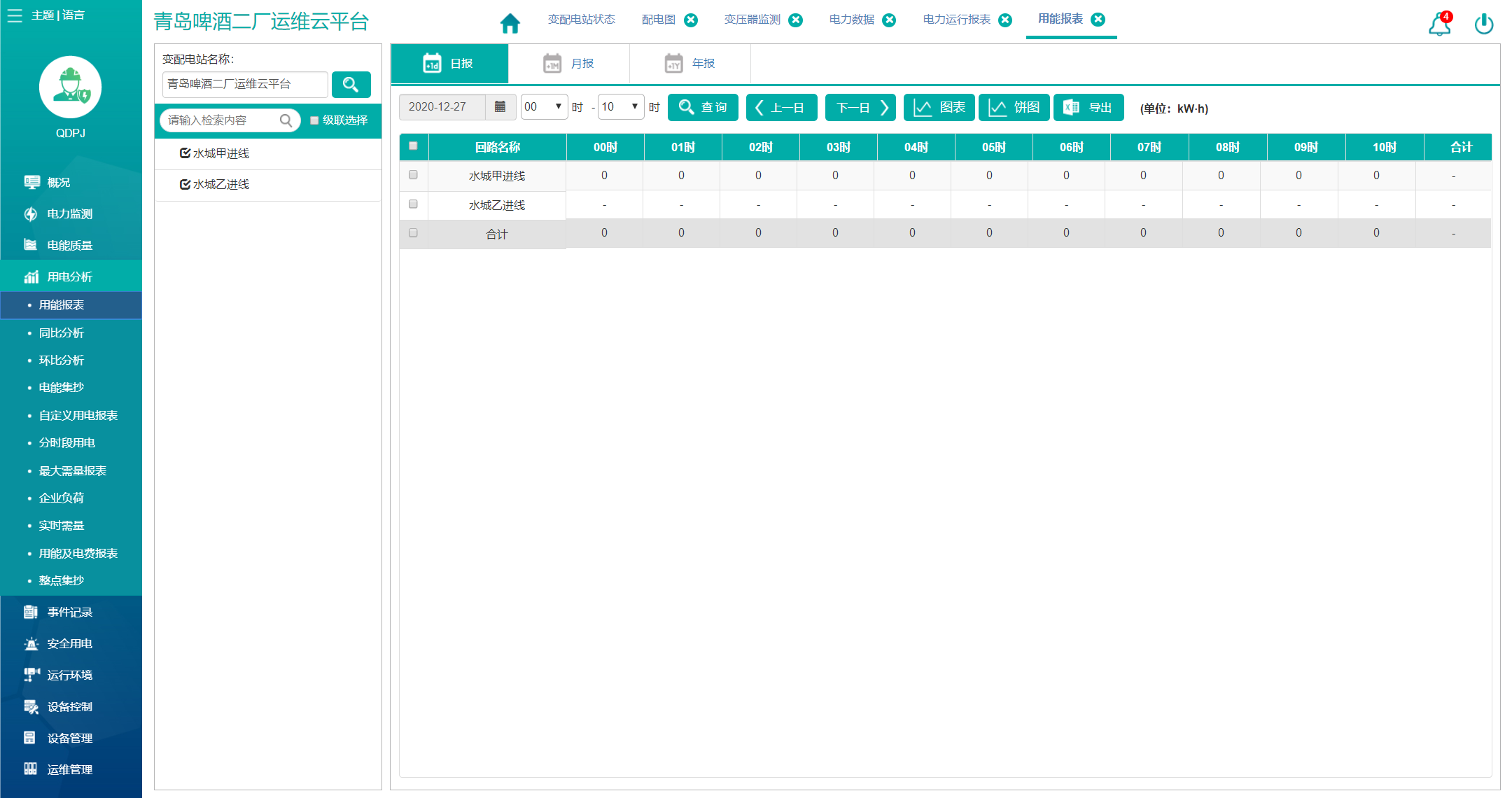 用電分析包括用能報(bào)表、同比分析、環(huán)比分析、電能集抄、計(jì)量及線(xiàn)路損耗。