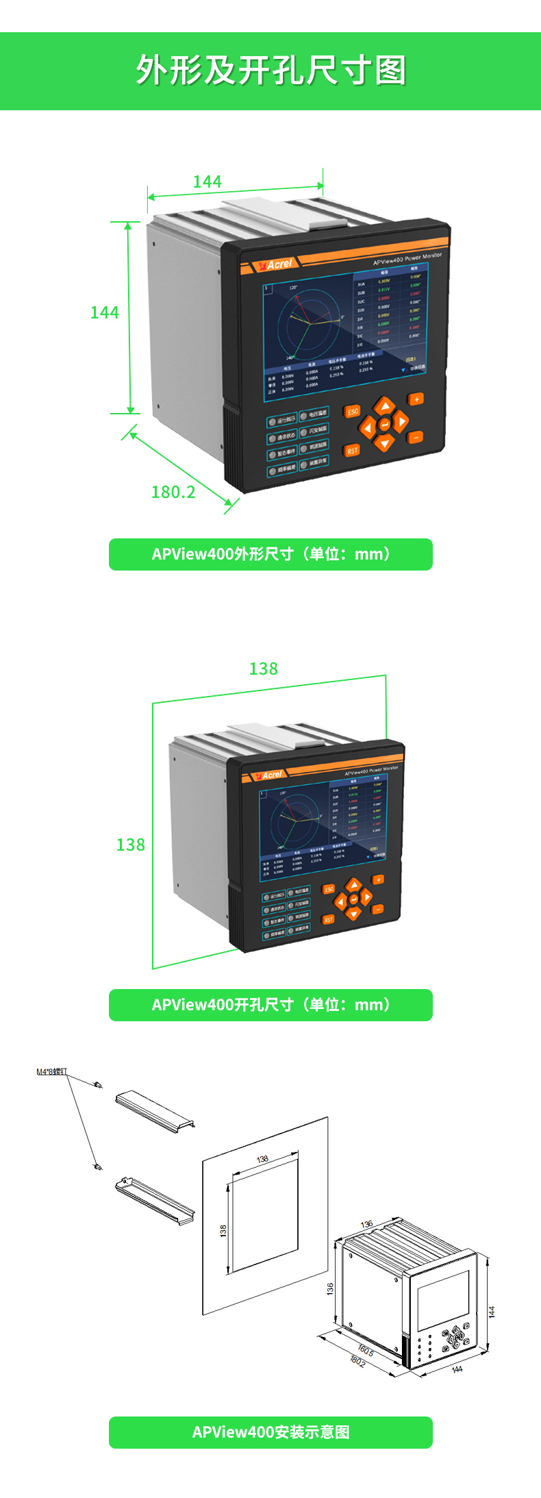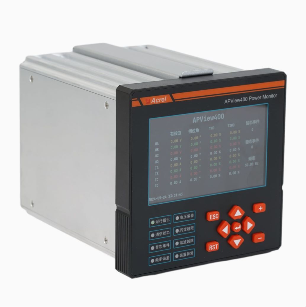APView400 電能質(zhì)量在線監(jiān)測裝置采用了高性能多核平臺和嵌入式操作系統(tǒng),遵照IEC61000-4-30《測試和測量技術(shù)-電能質(zhì)量測量方法》中規(guī)定的各電能質(zhì)量指標的測量方法進行測量,集諧波分析、波形采樣、電壓暫降/暫升/中斷、閃變監(jiān)測、電壓不平衡度監(jiān)測、事件記錄、測量控制等功能為一體。裝置在電能質(zhì)量指標參數(shù)測量方法的標準化和指標參數(shù)的測量精度以及時鐘同步、事件告警功能等各個方面均達到了國家標準 A 級要求,能夠滿足 35kV 及以下供電系統(tǒng)電能質(zhì)量監(jiān)測的要求。