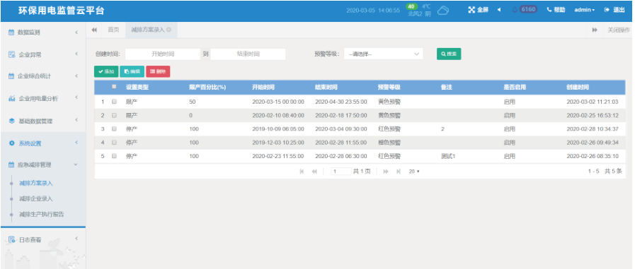 減排方案錄入:根據(jù)減排計(jì)劃錄入減排方案,支持應(yīng)急預(yù)案的啟動(dòng)。