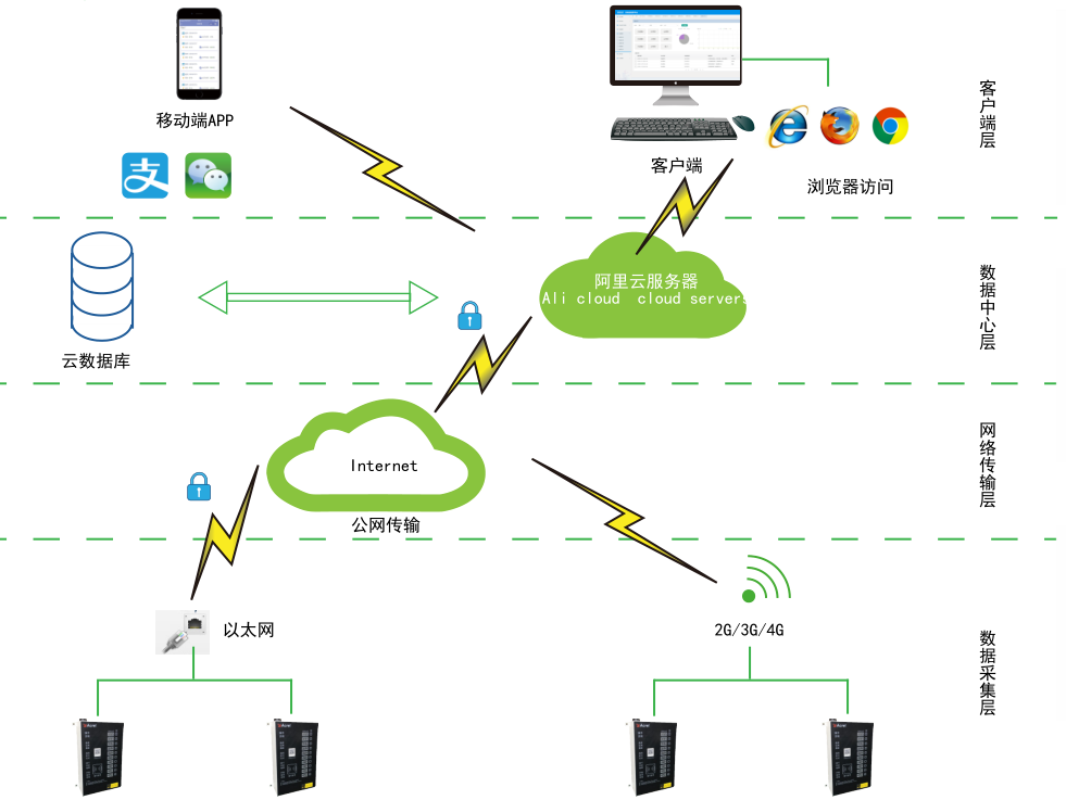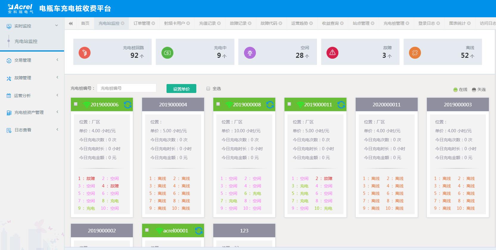 安科瑞電瓶車(chē)充電樁通過(guò)GPRS模塊與云端進(jìn)行通信和數(shù)據(jù)交互。系統(tǒng)能夠?qū)﹄娖寇?chē)充電樁的日常狀態(tài)、充電過(guò)程進(jìn)行監(jiān)控;實(shí)現(xiàn)充電支付對(duì)接:支持投幣、刷卡、微信支付等多種支付方式,保證支付交易過(guò)程的完整性,對(duì)充電過(guò)程中的異常情況進(jìn)行有效預(yù)警;實(shí)現(xiàn)對(duì)下游站級(jí)平臺(tái)的清算、對(duì)賬功能。