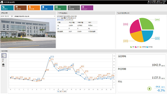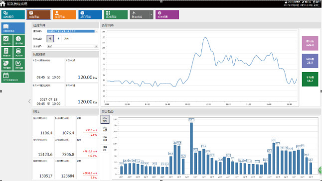 系統(tǒng)可以根據(jù)分類能耗的支路名稱查詢用能情況,顯示當日和當月的用能峰值(電能對應最大需量值)。顯示當日用能、當月用能、當年用能與昨日同期用能、上月同期用能、上年同期用能的比較情況。以條形顯示過去48小時、31天、12個月、3年的能耗情況。右上角顯示過去15分鐘曲線(電表顯示功率曲線,流量表顯示流速曲線),同時顯示當前值與15分鐘內(nèi)的最大值和最小值。