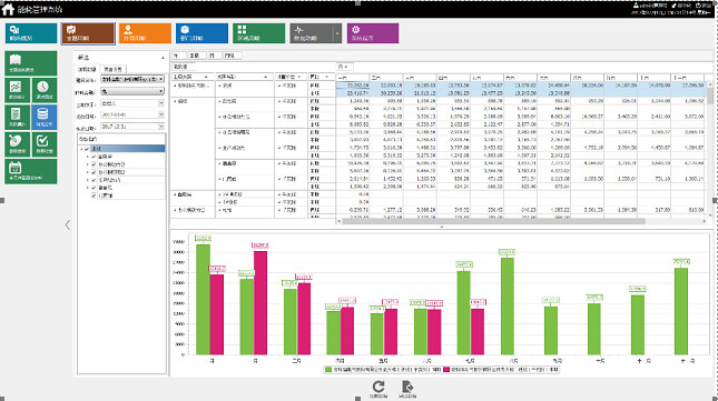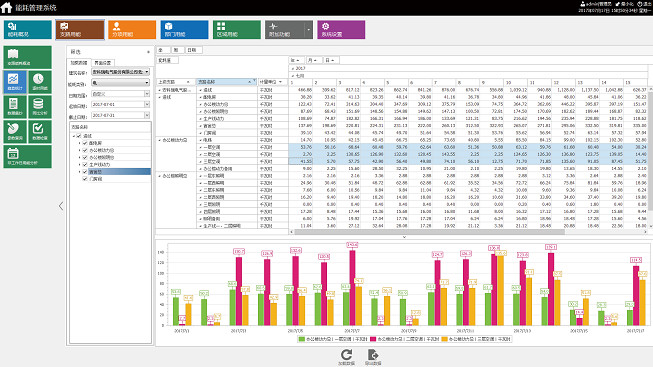 系統(tǒng)依據(jù)住建部分類分項能耗數(shù)據(jù)采集導則,將建筑物耗電分為照明插座、空調(diào)、動力和特殊用電進行計量裝置選型和設置,并按用能區(qū)域或功能區(qū)域等劃分并進行統(tǒng)計,以報表和同、環(huán)比棒圖形式展現(xiàn)該區(qū)域的能源消耗。