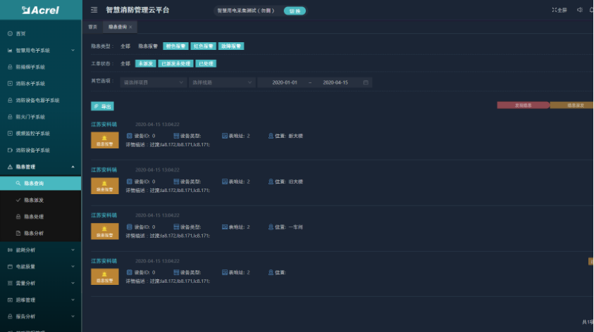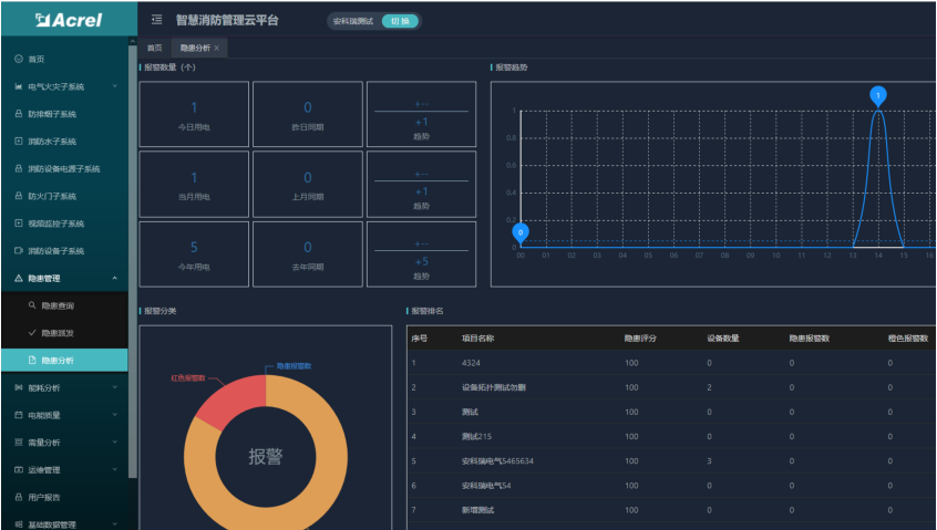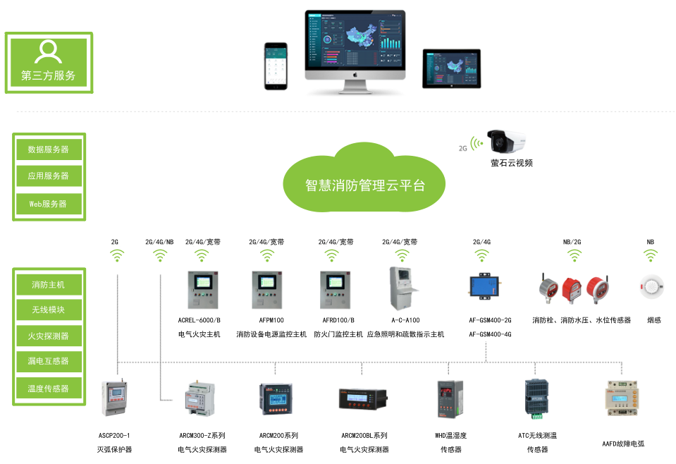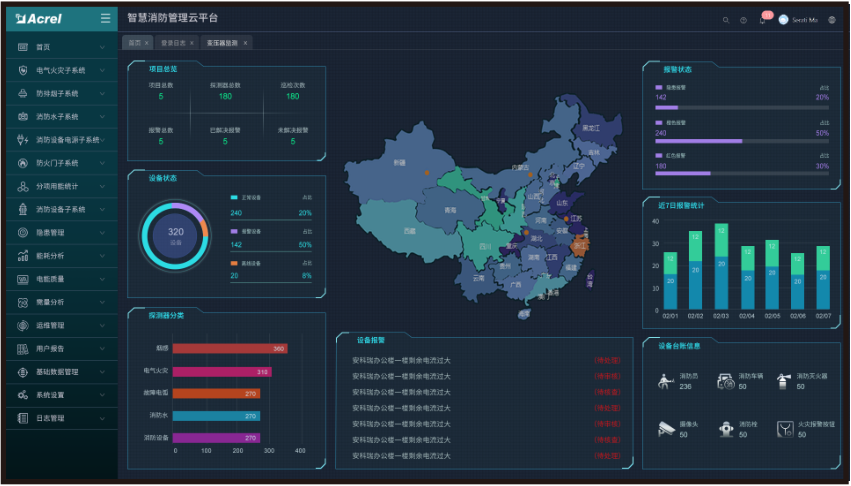 安科瑞智慧消防綜合管理云平臺基于物聯(lián)網(wǎng)、大數(shù)據(jù)、云計算等現(xiàn)代信息技術(shù),將分散的火災(zāi)自動報警設(shè)備、電氣火災(zāi)監(jiān)控設(shè)備、智慧煙感探測器、智慧消防用水等設(shè)備連接形成網(wǎng)絡(luò),并對這些設(shè)備的狀態(tài)進行智能化感知、識別、定位,實時動態(tài)采集消防信息,通過云平臺進行數(shù)據(jù)分析、挖掘和趨勢分析,幫助實現(xiàn)科學(xué)預(yù)警火災(zāi)、網(wǎng)格化管理、落實多元責(zé)任監(jiān)管等目標(biāo)。填補了原先針對“九小場所”和?;飞a(chǎn)企業(yè)無法有效監(jiān)控的空白,適應(yīng)于所有公建和民建,實現(xiàn)了無人化值守智慧消防,實現(xiàn)智慧消防“自動化”、“智能化”、“系統(tǒng)化”、用電管理“精細(xì)化”的實際需求。